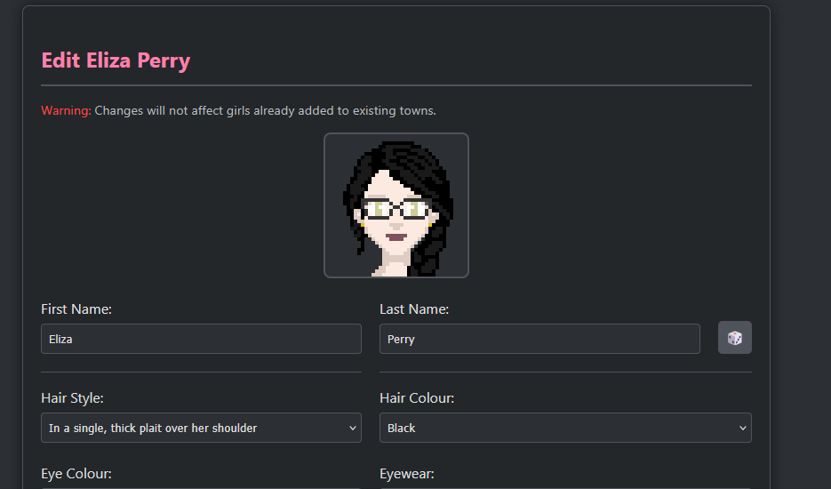 To help make the portraits more diverse, I've also added more hairstyles, hair colours, eye colours and skin tones. Eye shape is linked to personality, and many of the facial features will also appear in the portrait. Finally, I've added two new customisation slots: eyewear and piercings. You can visit new locations in town to change these & they'll also be linked to personality. For example, a Rebel will be more likely to have piercings, whilst a Bookish girl will be more likely to have eyewear.